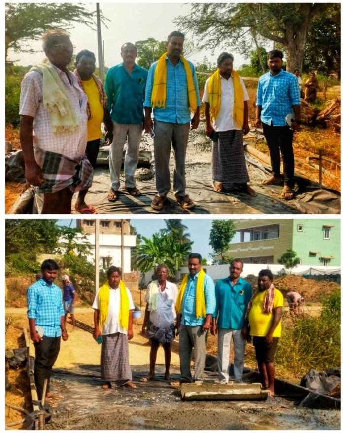 కోట మండలం తిమ్మనాయుడుపాలెం గ్రామ అభివృద్ధి తన లక్ష్యమని కోట మండల రైతు అధ్యక్షులు మారం రెడ్డి శ్రీధర్ రెడ్డి అన్నారు సోమవారం తిమ్మనాయుడుపాలెం గ్రామంలో 5 లక్షల రూపాయలతో సిమెంట్ రోడ్డు ఏర్పాటు కు శ్రీకారం చుట్టారు ఈ సందర్భంగా రైతు అధ్యక్షులు మారం రెడ్డి శ్రీధర్ రెడ్డి మాట్లాడుతూతిమ్మనాయుడుపాలెం పంచాయతీ అభివృద్ధి లక్ష్యంగా ప్రజల శ్రేయస్సు ధ్యేయంగా పనిచేస్తామని ప్రజలు నమ్మకాన్ని నిలబెట్టుకుంటామని గ్రామ అభివృద్ధి మా లక్ష్యం అని తిమ్మనాయుడుపాలెంలో మిగిలిన రోడ్లు కూడా త్వరలో పూర్తి చేస్తామని మారం రెడ్డి శ్రీధర్ రెడ్డితెలిపారు కూటమి ప్రభుత్వం అధికారంలోకి వచ్చినప్పుడు నుంచి గ్రామాల్లో అభివృద్ధికి శ్రీకారం చుట్టామని మా ప్రియతమ ముఖ్యమంత్రి నారా చంద్రబాబు నాయుడు ఉపముఖ్యమంత్రి పవన్ కళ్యాణ్ ఐటి మరియు విద్యాశాఖ మంత్రి నారా లోకేష్ మరియు ప్రజల పక్షపాతి మా ప్రియతమ నేత గూడూరు నియోజకవర్గం శాసనసభ్యులు డాక్టర్ పాశిం సునీల్ కుమార్ సహకారంతో అభివృద్ధి కార్యక్రమాలు చేస్తున్నామని ఆయన తెలిపారు.తిమ్మనాయుడు పాలెం గ్రామస్తులు మాట్లాడుతూ గూడూరు నియోజకవర్గ శాసనసభ్యులు డాక్టర్ పాసిం సునీల్ కుమార్ మరియు మారం రెడ్డి శ్రీధర్ రెడ్డి కృషితో సిమెంట్ రోడ్ నిర్మాణం ఎన్నో ఏళ్లుగా రోడ్డు లేక అవస్థలు పడుతున్నామని రోడ్డు వేయడంతో తిమ్మనాయుడుపాలెం గ్రామం ప్రజలు తరపున కృతజ్ఞతలు తెలుపుతున్నామన్నారుఈ కార్యక్రమంలో తిమ్మనాయుడు పాలెం బూత్ కన్వీనర్ మర్రి నాగభూషణం,గ్రామ కమిటీ అధ్యక్షులు నాగేళ్ల గురునాథం మరియు గ్రామ ప్రజలు తదితరులు పాల్గొన్నారు.