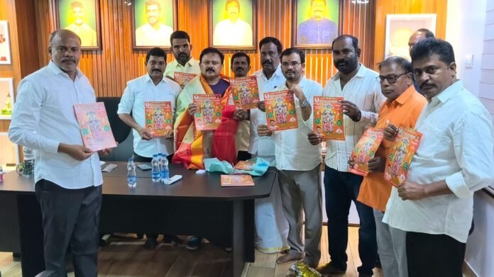 గూడూరు పట్టణంలోని తెలుగుదేశం పార్టీ కార్యాలయంలో ఆదివారం తూర్పు కనుపూరు ముత్యాలమ్మ జాతర కరపత్రం ఆవిష్కరణ గూడూరు నియోజకవర్గ శాసనసభ్యులు డాక్టర్ పాసిం కుమార్ ఆధ్వర్యంలో జరిగింది ఈ సందర్భంగా ఆయన మాట్లాడుతూ తూర్పు కనుపూరు జాతర రాష్ట్ర పండుగగా మార్చేందుకు కృషి చేసే విధంగా ప్రయత్నిస్తానని తెలిపారు అసెంబ్లీకి వెళ్ళినప్పుడు ఈ విషయాన్ని గౌరవ ముఖ్యమంత్రి చంద్రబాబు నాయుడు గారి దృష్టికి తీసుకెళ్తానని ఆయన చెప్పారు ఈ జాతర ఎంత వైభవంగా జరుగుతుందని తూర్పు కనుపూరు జాతర మహోత్సవానికి సహాయ సహకారాలు అందించిన దేవాదాయ శాఖ మంత్రి ఆనం రామనారాయణ రెడ్డికి కృతజ్ఞతలు తెలుపుతున్నామన్నారు అలాగే దేవాలయం అభివృద్ధికి అనాదిగా సహాయపడిన ఎంతోమంది పెద్దలకి కృతజ్ఞతలు తెలుపుతున్నామన్నారు తూర్పు కనుపూరు ఆలయ చైర్మన్ దశదరమిరెడ్డి నేతృత్వంలో ఈనెల 10వ తేదీ నుండి 13వ తేదీ వరకు ఎంతో వైభవంగా తిరుమల జరుగుతుందని ఆయన తెలిపారు ఇప్పటికే అధికారులు పర్యవేక్షణలో జాతర సంబంధించిన కార్యక్రమాలు జరుగుతున్నాయని ఎటువంటి ఇబ్బందులు లేకుండా అన్ని కార్యక్రమాలు పూర్తి చేస్తామని ఎంతో వైభవంగా తిరుణాల జరుపుతామని ఆయన అన్నారు మా తూర్పు కనుపూరు దేవాలయానికి సహకరిస్తున్న మా ముఖ్యమంత్రివర్యులు నారా చంద్రబాబు నాయుడుకి ఉప ముఖ్యమంత్రి వర్యులు పవన్ కళ్యాణ్ కి మా భవిష్యత్తు నాయకులు విద్య ఐటీ శాఖ మాత్యులు నారా లోకేష్ బాబు గారికి మమల్ని అందరిని ముందుండి నడిపిస్తున్న భారత ప్రధానమంత్రి నరేంద్ర మోడీకి కృతజ్ఞతలు తెలుపుతున్నామన్నారు ఈ కార్యక్రమంలో ఆలయ కమిటీ సభ్యులు పాల్గొన్నారు.