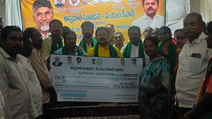గూడూరు పట్టణం:- అన్నదాత సుఖీభవ -PM కిసాన్ 3వ విడత విడుదల కార్యక్రమం లో భాగంగా శుక్రవారం షాది మంజిల్ నందు రైతులతో సమావేశం లో పాల్గొన్న గూడూరు నియోజకవర్గ శాసన సభ్యులు డాక్టర్ పాశిం సునీల్ కుమార్ ఈ సందర్భంగా ఆయన మాట్లాడుతూ నియోజకవర్గంలో అన్నదాత సుఖీభవ ద్వారా 22 వేల 217 కుటుంభాలకు 12 కోట్ల 54 లక్షల 94 వేల రూపాయలు అందిస్తున్నాం అన్నారు. కూటమి ప్రభుత్వం చెప్పిన విధంగా సూపర్ 6 పథకాలలో ఒక్కోటి అమలు చేస్తుంది. అన్నదాత సుఖీభవ పథకం కింద రైతుకు 20 వేలు అందిస్తామని చెప్పాము. మొదటి విడత లో భాగంగా 7000 వేల రూపాయలు ప్రతి రైతు ఖాతాలో జమ చేసాం.రెండో విడత లో భాగంగా రాష్ట్ర ప్రభుతం 5000 వేలు,కేంద్ర ప్రభుత్వం 2000 వేలు రూపాయలు